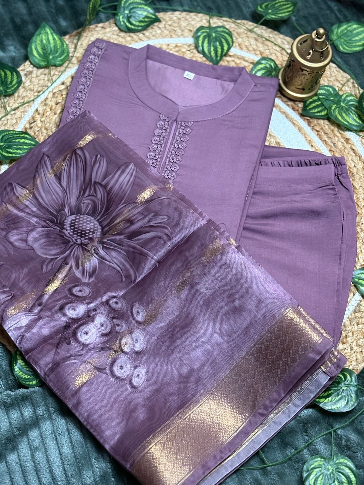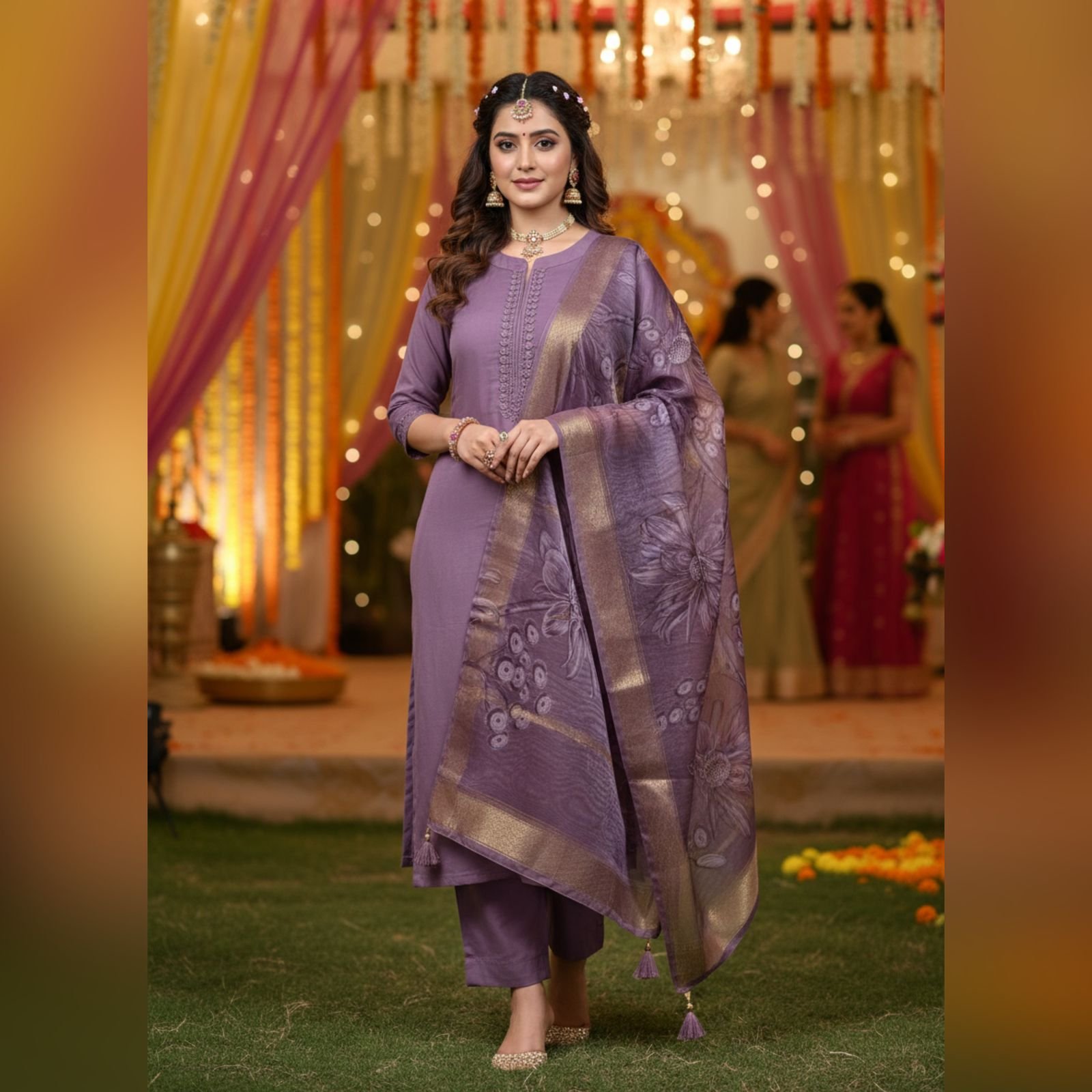 Graceful Lavender Kurti Set with Designer Dupatta – Festive Look